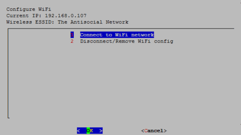 Wählen Sie ganz unten den Eintrag WIFI und drücken Sie die A-Taste. Folgende Ansicht wird geöffnet. Wählen Sie „Connect to WIG`FI network“.