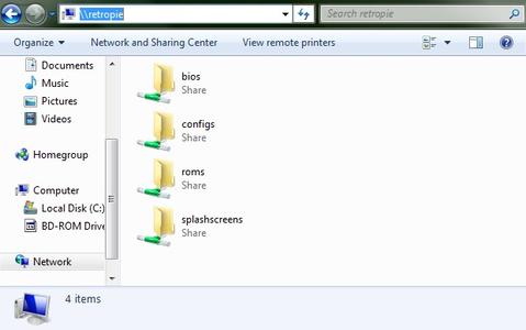 Geben Sie im Explorer „retropie“ ein. Sie können „retropie“ auch mit der IP des Raspberry Pi ersetzen. Jetzt können Sie die ROMs im Ordner roms in den passenden Emulator Ordner kopieren.