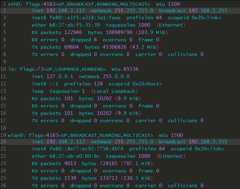 Dies weist mopidy an, die http-Erweiterung zu aktivieren. 0.0.0.0 erlaubt mopidy, Verbindungen von jeder IP-Adresse bzw. jedem Rechner anzunehmen, Port ist selbsterklärend. Jetzt benötigen wir noch die lokale IP-Adresse des Raspberry Pi. Um diese zu erfahren, geben wir einfach: ifconfig im Terminal des Raspberry Pi ein. Die Ausgabe des Befehls sollte etwa so aussehen: