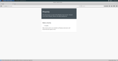 Worum handelt es sich bei all den Programmen? Mopidy ist ein mpd-Server, was ganz einfach für music player daemon steht (Musikplayer Dienst). Auf deren Website steht: Mopidy ist ein umfangreich ausgestatteter Musik-Server, geschrieben in Python.