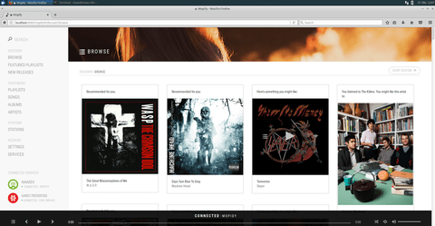 Mopidy-mopify ist ein Web-Frontend zur Benutzung von mopidy im Stil von Spotify. Dadurch kann ich mopidy mit einem Browser von jedem Gerät in meinem Heimnetz bedienen und kontrollieren.