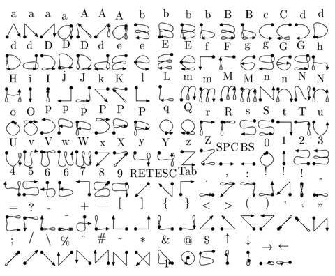 Hier noch die Tabelle mit den Gesten, die Xstroke erkennt: